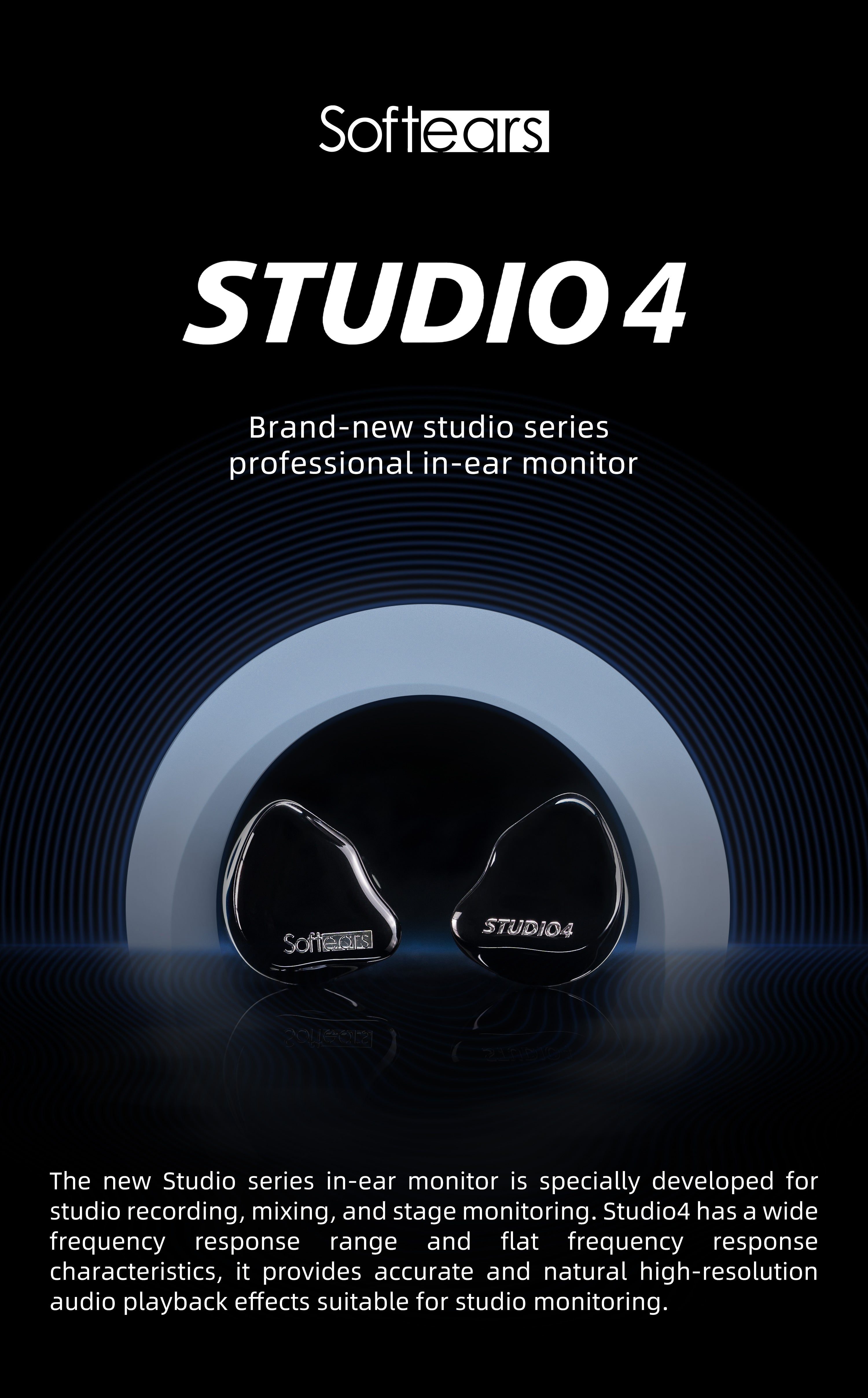 The new Studio series in-ear monitor is specially developed for studio recording, mixing, and stage monitoring. Studio4 has a wide frequency response range and flat frequency response characteristics, it provides accurate and natural high-resolution audio playback effects suitable for studio monitoring.